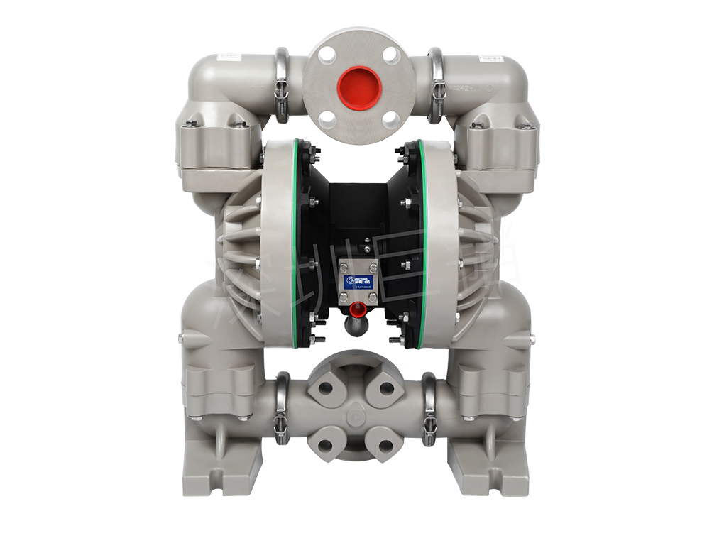 淺析巨韜塑料隔膜泵的7大使用要領(lǐng)在兩個對稱的氣動塑料隔膜泵工作腔內(nèi),每個工作腔內(nèi)裝有柔性隔膜,并由連桿構(gòu)成兩個隔膜。從泵的進(jìn)氣口連接壓縮空氣后,推動兩個工作腔內(nèi)的隔膜,帶動由聯(lián)軸節(jié)桿連接的兩個隔膜同步運動。同時,另一個工作腔內(nèi)的氣體從泵外隔...